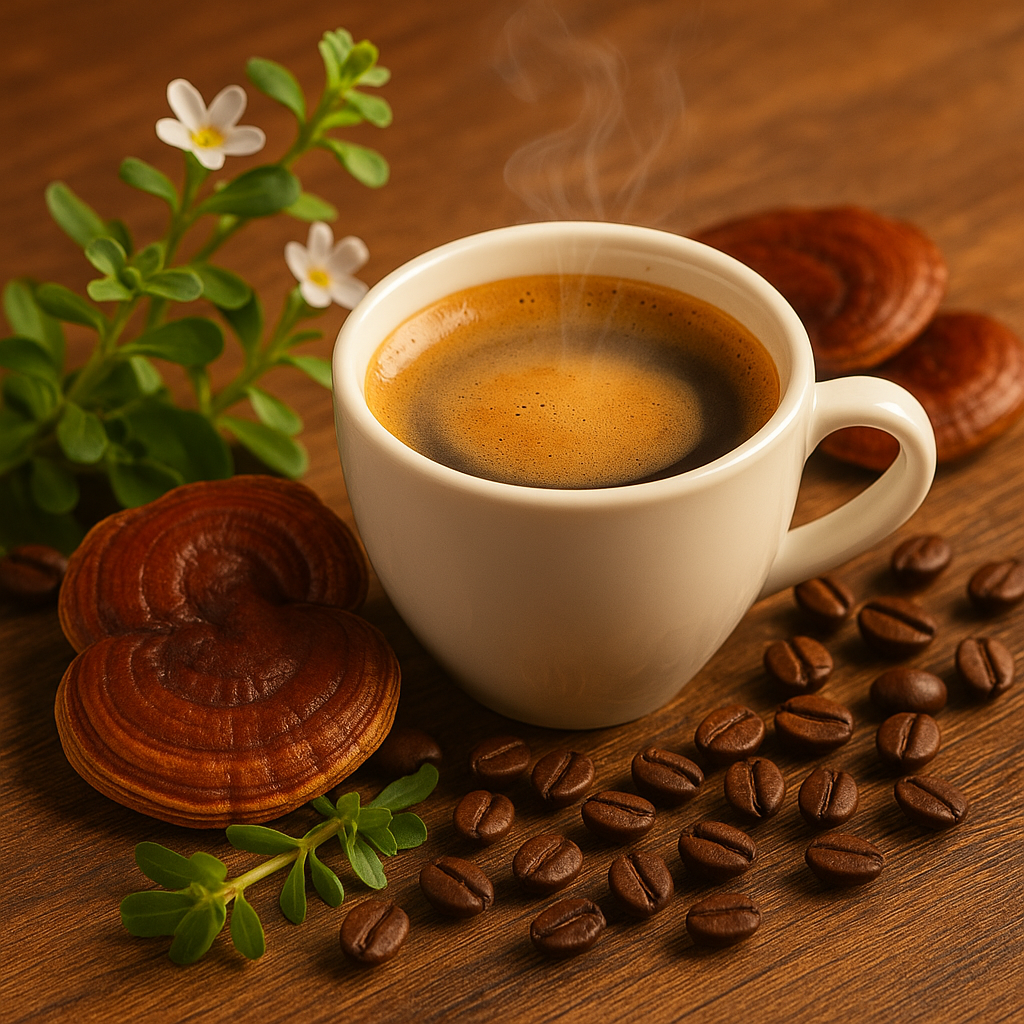 Studi preliminari suggeriscono che la Bacopa potrebbe moderare gli effetti stimolanti della caffeina grazie alle sue proprietà adattogene, creando un effetto “rilassato ma vigile” (Downey et al., 2013).